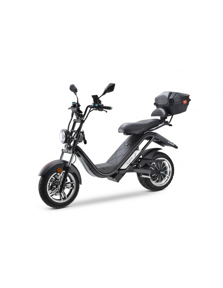 Avec son grand siège, vous serez confortablement installé à bord de ce scooter city coco avec style Harley 3000 watts Autonomie de 60 km Vitesse : 50 km/h Batterie amovible que l'on peut charger en externe Bonus écologique : pour ce city coco, l'état vous reversera 200 € et jusqu'à 1500 € pour les professionnels