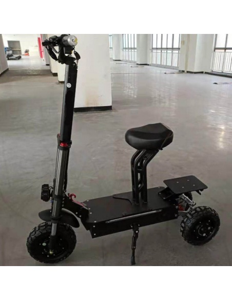 Trottinette électrique ZT16 de Veleco pour seniors, personnes âgées et handicapés. La seule trottinette trottinette électrique avec marche arrière. Avec ses 750 watts, elle pourra parcourir tout type de chemin. Trottinette électrique ZT16 de Veleco pour personnes à mobilité réduite. Vitesse de 12 km/h et autonomie de 30 km. La trottinette dispose de 3 roues pour un parfait équilibre sans béquille, elle dispose d'un panier et le siège est réglable avant/arrière et haut/bas. Dimensions entre les 2 roues arrières : 68 cm (tient parfaitement en équilibre)