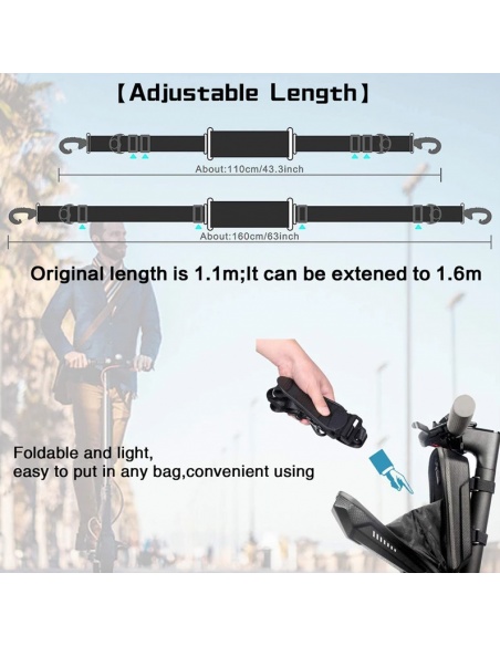 Vous en avez assez de porter votre trottinette. Optez pour la bandoulière ceinture qui vous permettra de moins sentir le poids en la portant sur votre épaule.