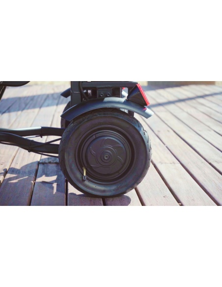 Avec une puissance de 48V, ce véhicule électrique mobilité réduite est capable de monter des pentes et de transporter des personnes avec un poids plus important. Cette puissance supplémentaire (comparé au 36V), est cruciale pour garantir une performance fiable même dans des conditions difficiles, telles que des routes en pente ou des terrains accidentés. Elle assure également que la trottinette peut être utilisée par des personnes de grande taille ou ayant un poids supérieur à la moyenne.