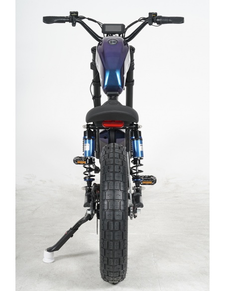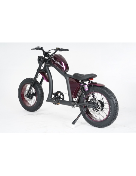 Le Mangosteen FT02 se distingue par son cadre audacieux, rappelant le style des motos chopper. Avec ses pneus fatbike de 20 pouces et ses finitions soignées, il attire tous les regards. Que ce soit pour une balade en ville ou une escapade en bord de mer, ce vélo est votre meilleur allié pour rouler avec classe.