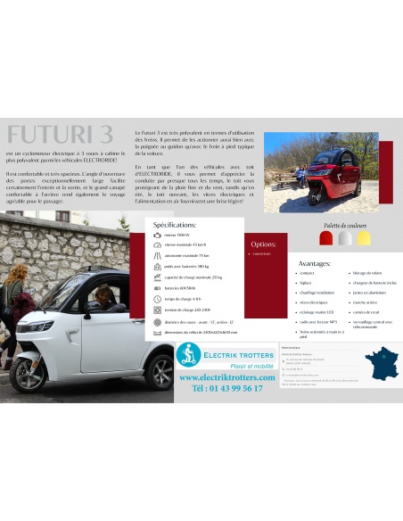 Accueil Voiture sans permis Futuri 3 scooter voiturette électrique 1500W pour PMR et séniors electroride
