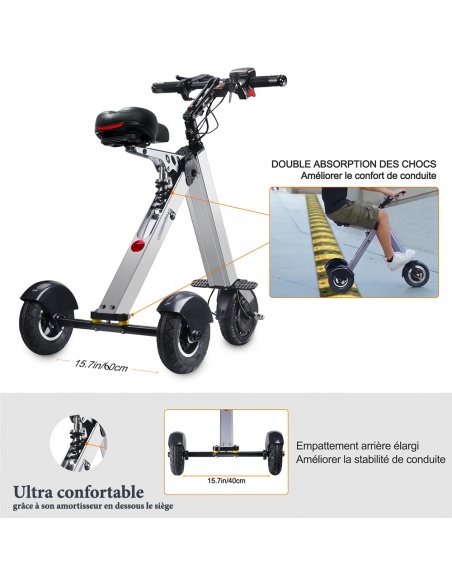 Sécurité Renforcée : La conception à trois roues réduit significativement le risque de chute, fournissant une expérience de conduite plus sûre pour les utilisateurs, en particulier ceux qui pourraient être plus sujets aux accidents.