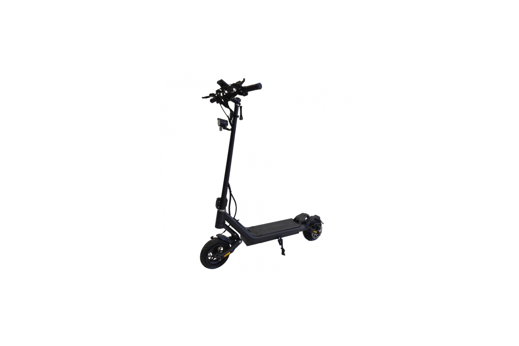 Trottinette électrique 2 roues de 48V avec la possibilité d'ajouter un panier à l'arrière pour personne à mobilité réduite et sénior. Vitesse max de de 40km/h pour une autonomie de 30km