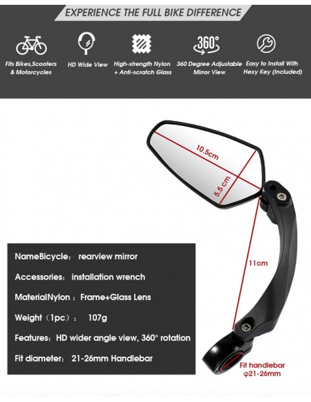 Rétroviseur 360° ultra maniable universelle trottinette électrique et vélo électrique