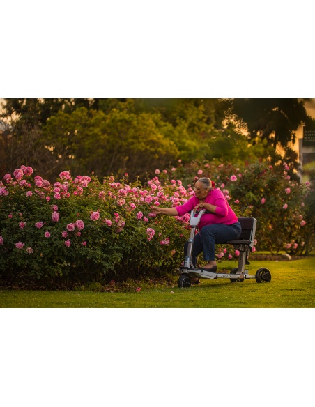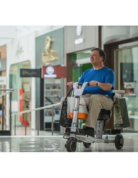 Trottinette électrique 3 roues pour PMR et sénior vous pouvez la pliez puis la divisée en 2 parties c’est ce qui la rend vraiment pratique. Équipée de pneu anti-crevaison Vitesse : 0-7km/h Autonomie : 20km environ