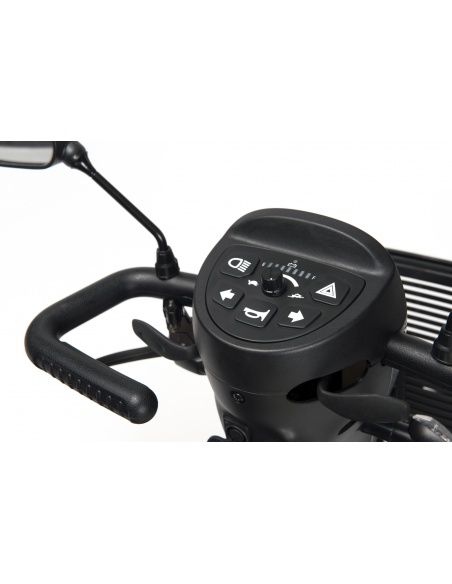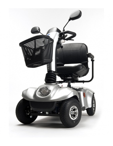 Le scooter électrique Eris pour senior et handicapé peut être utilisé à l’intérieur et à l’extérieur. Avec sa colonne de direction réglable en inclinaison, son boitier de commande analogique, son panier avant , son dossier rabattable et son accoudoirs relevables, vos parcours seront facilités. Avec ses grosses roues gonflables, vous pourrez parcourir un franchissement de 5 cm.