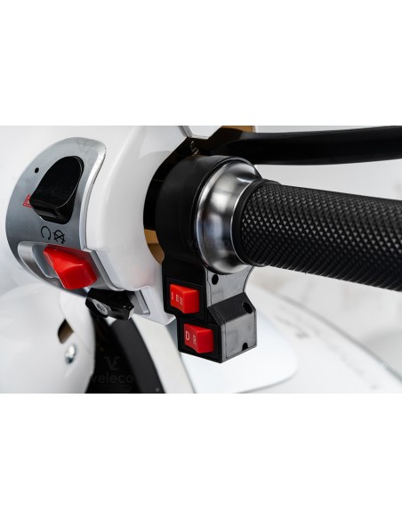 Monté sur les accoudoirs du scooter et un siège confortable assurent une position de conduite confortable.
