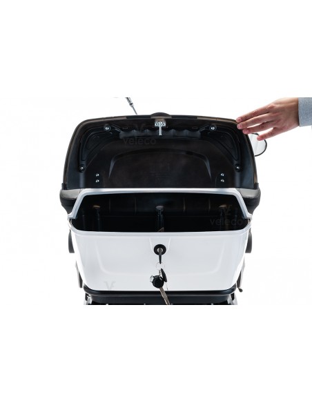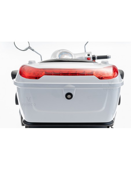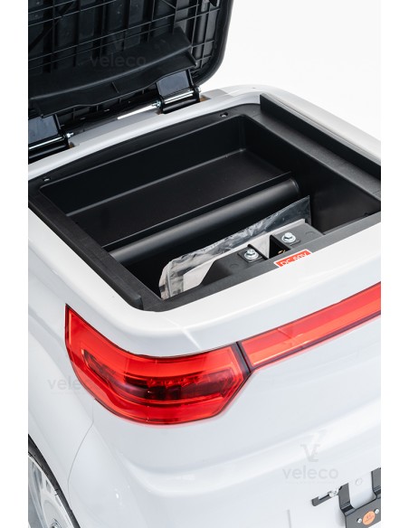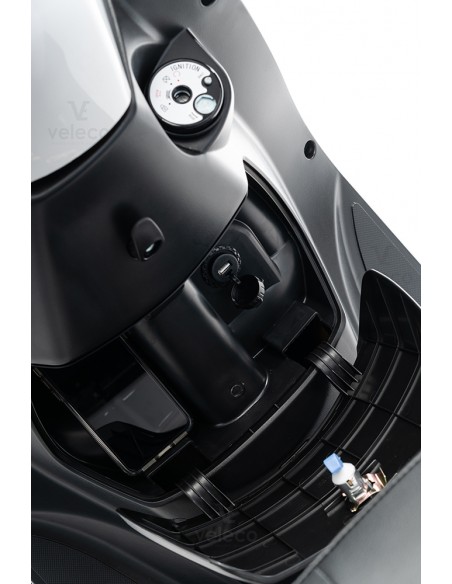 Le scooter dispose d’un espace de rangement verrouillable sous le siège et le coffre à bagages, ce qui en fait le compagnon idéal pour faire les courses.