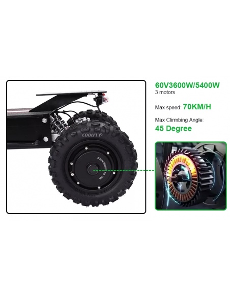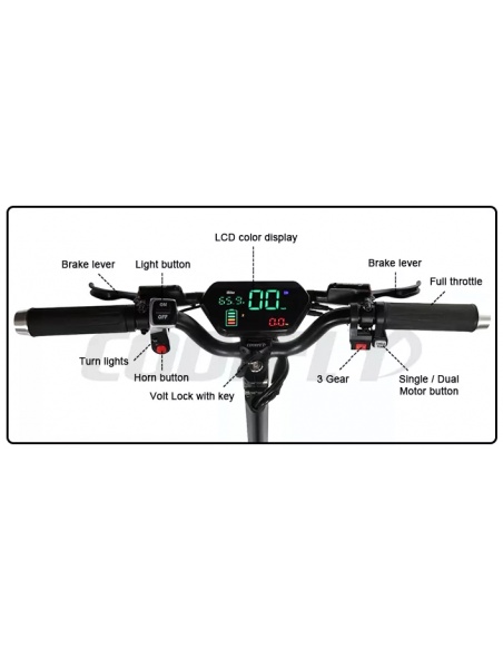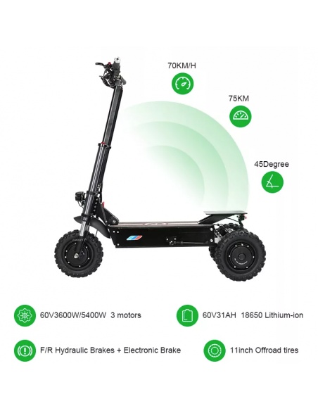 - Vitesse max : 70 km/h (3 modes de vitesse)