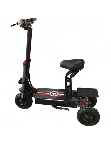 Pour les longues distances ou un confort accru, la Falcon peut être équipée d’un siège ergonomique. Ce siège offre une assise stable et confortable. De plus, la trottinette est pliable, ce qui facilite son transport et son rangement.
