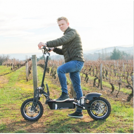 La trottinette électrique cross Kirest avec siège (amovible) est la moins cher du marché pour tous les terrains : en forêt, à la montagne et sur tous chemins. Elle est puissante, pliable et adaptée à tous les environnements dont les usages professionnels en extérieur.
